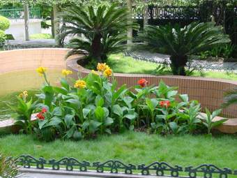 排水良好的种类, 如芍药、牡丹等,也有配以山石、小水面和树木做成盆景形式的花台。 花池是整个种植床和地面高程差不多,边缘也用砖石维护,池中常灵活的种以花木或配置山石,这也是中国式庭院一种传统的花卉种植形式。 四、花丛 自然式花卉布置,一般以花丛为最小单元组合,每个花丛由3-5株,甚至十几茱花卉组成,可以是同一种类,也可以是不同种类混交,以选用多年生、生长健壮的宿根花卉为主,也可以选用野生花卉和自播繁衍的1-2年生花卉。花从可以布置在树林边缘或自然式道路两旁。花丛在平面轮廓到立面构图都是自然的,同一花卉内种类要少而精,形态和色彩要有变化,各种花卉以块状混交为主,并要有大少疏密、断续的变化。